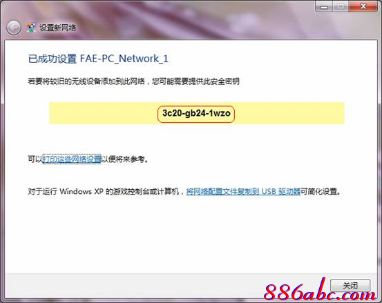 5、成功設置無線路由器并完成無線連接,下圖紅框所示為自動生成的無線密碼。