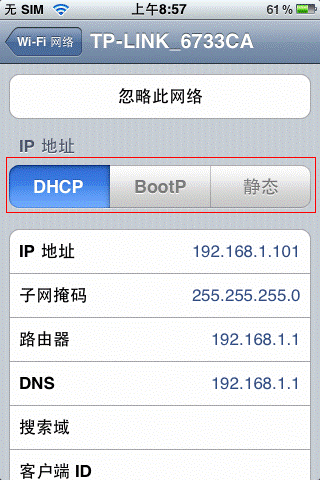 STEP6:獲取到正確的網絡參數之后,IPHONE即可正常連接到網絡。