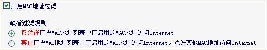 一、選擇缺省過(guò)濾規(guī)則是僅允許已設(shè)MAC地址列表中已啟用的MAC地址訪問(wèn)Internet