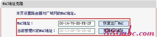 解決辦法:在水星無線路由器上啟用MAC地址克隆功能,即把水星路由器LAN口的MAC地址修改成能夠撥號上網(wǎng)的那臺電腦的MAC地址。