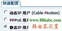進去之后,在快速設置里面設置成靜態ip用戶,如圖: