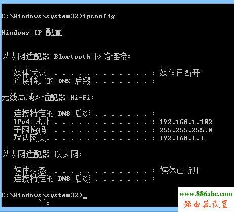 2. 注意配置的時候,提到的MAC地址,IP地址等,均為ipconfig(-all)命令輸出中,無線局域網適配器wifi的參數,以太網的(本地連接)的在這里不需要也沒有用。