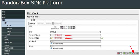 上面的是潘多拉固件普通撥號方法,接下來才是怎么多播。如果不需要多播,到此步即可結束操作。