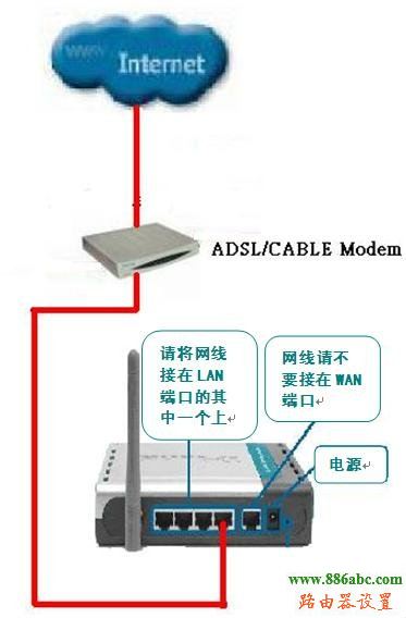 1.首先請將您的對外線路或是從前端另一臺路由器接過來的網線接在LAN端口其中一個端口,而不要接在WAN。