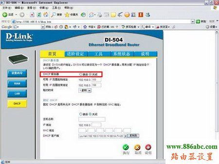 2.進入路由器的設定界面,將DHCP服務器關閉即可。