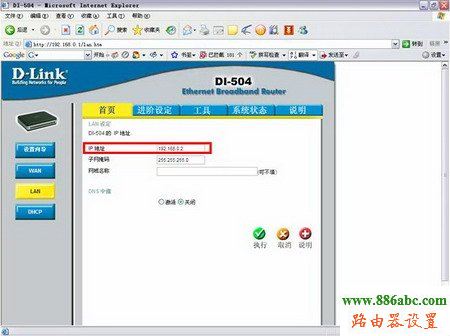 注意:若您在這臺路由器的前端有另一臺路由器,并且也是D-Link品牌,請將此臺路由器的LAN IP地址改成192.168.0.2。