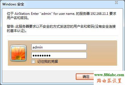 | 1.進入路由器web管理設置界面:打開瀏覽器,在地址欄里輸入本產品的設置IP地址(出廠默認為192.168.11.1),然后按回車鍵。出現要求輸入用戶名密碼的畫面時,請按以下輸入:用戶名→admin 密碼→password(出廠默認沒有密碼),點擊[OK]. |