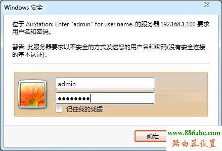 10.通過新的IP地址“192.168.1.100”進入路由管理界面,輸入默認用戶名“admin”和密碼“password”。 |