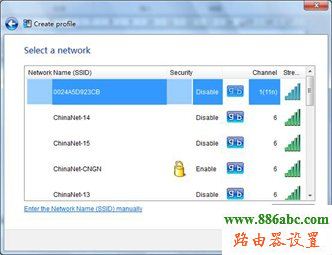 | e.待搜索到周圍無線信號,選擇該路由器的SSID(該路由默認SSID相見路由器標貼),點擊“下一步” |