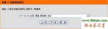 中國地區在下拉菜單中選擇GMT+8:00時區,然后單擊下一步,進入網絡連接的設置。