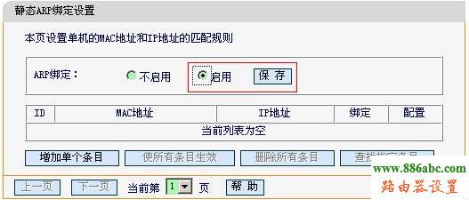 注意:默認(rèn)情況下ARP綁定功能是關(guān)閉,請(qǐng)選中啟用后,點(diǎn)擊保存來(lái)啟用。