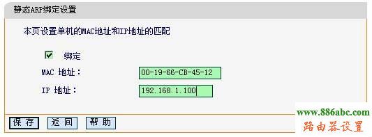 打開(kāi)“靜態(tài)ARP綁定設(shè)置”窗口如下:
