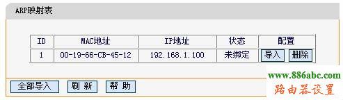 在添加IP與MAC地址綁定的時(shí)候,可以手工進(jìn)行條目的添加,也可以通過(guò)“ARP映射表”查看IP與MAC地址的對(duì)應(yīng)關(guān)系,通過(guò)導(dǎo)入后,進(jìn)行綁定。