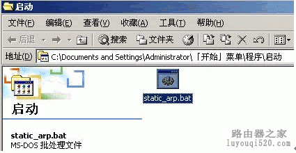 保存就可以了,以后可以通過(guò)雙擊它來(lái)執(zhí)行這條命令,還可以把它放置到系統(tǒng)的啟動(dòng)目錄下來(lái)實(shí)現(xiàn)啟動(dòng)時(shí)自己執(zhí)行。打開(kāi)電腦“開(kāi)始”->“程序”,雙擊“啟動(dòng)”打開(kāi)啟動(dòng)的文件夾目錄,把剛才建立的static_arp.bat復(fù)制到里面去:
