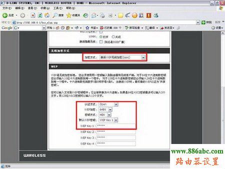對于WEP加密有兩種選擇,一種是64Bit,一種是128Bit。