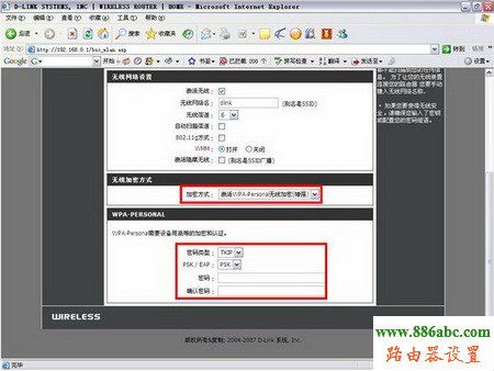 在這里有以下安全方式可供選擇:WEP,WPA-Personal, WPA2,WPA2-Auto。對于一般用戶來說可以選擇WEP,WPA-Personal這種方式。