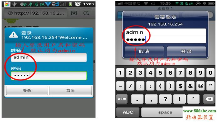 ③、輸入登錄用戶名和密碼,默認均為“admin”,小寫字母。如下圖所示: