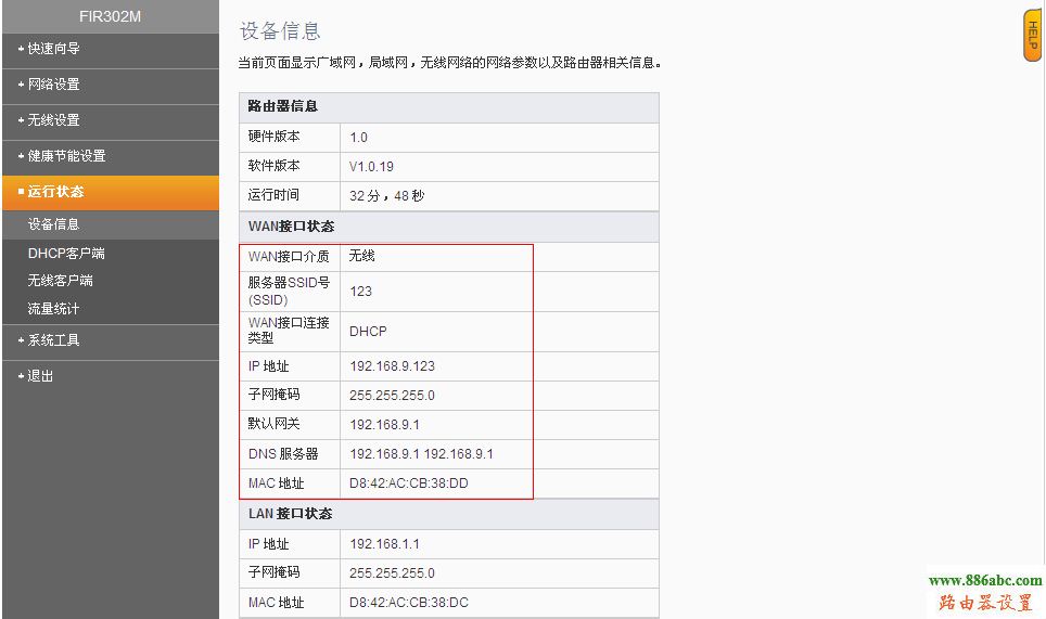 5、 保存以后點擊【運行狀態】,已獲取到上端設備分配地址,則表示設置成功,已可連接副路由器上網。