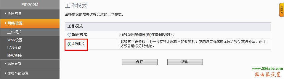 如果您在【工作模式】選擇中選擇了【AP模式】,就不用進行上一步禁用DHCP了,【AP模式】默認情況下DHCP服務器是禁用的。