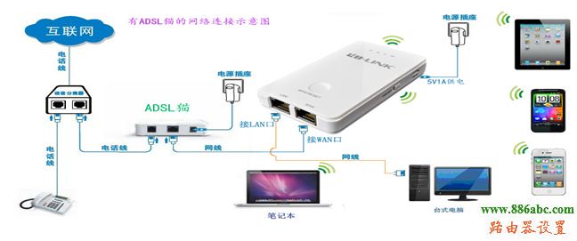 ①:有“ADSL貓”的寬帶網絡。比如直接從電信、聯通等運營商所接電話線入戶網絡,配有“貓”。如下圖: