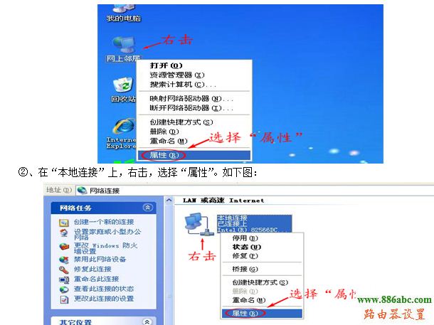 ①、在桌面上右擊“網上鄰居”,選擇屬性,如下圖: